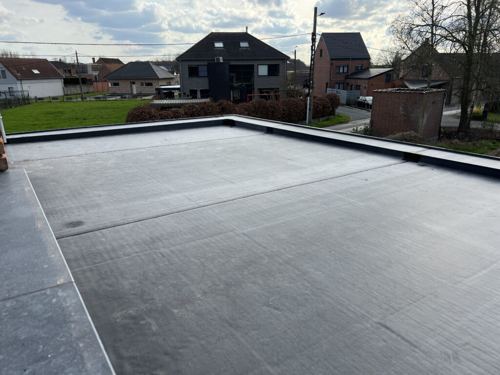Een strakke look met een plat dak in EPDM? Ik zorg ervoor dat je dak perfect waterdicht is en correct afvloeit.